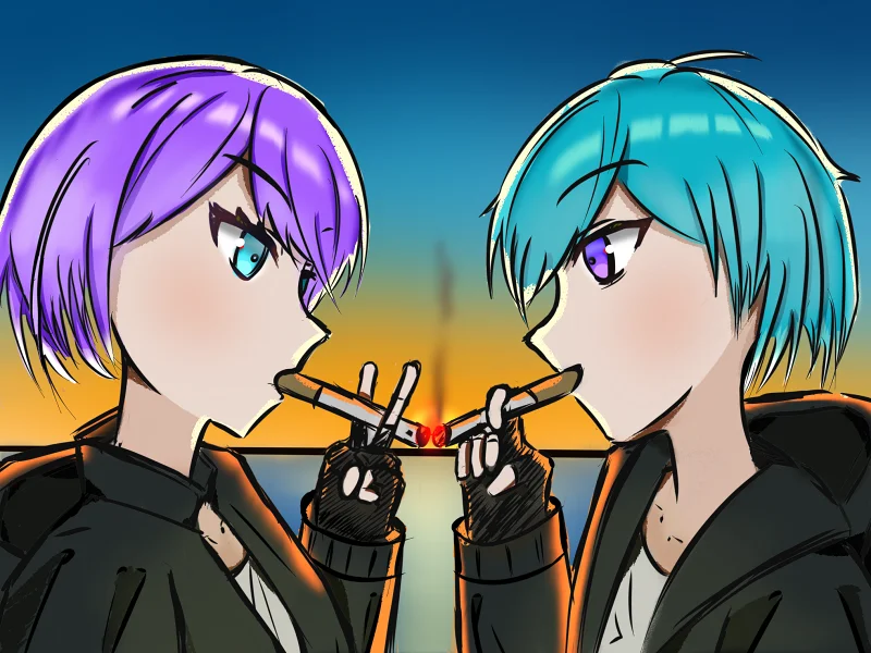 给自己的 oc 画的图,这俩是 cp。