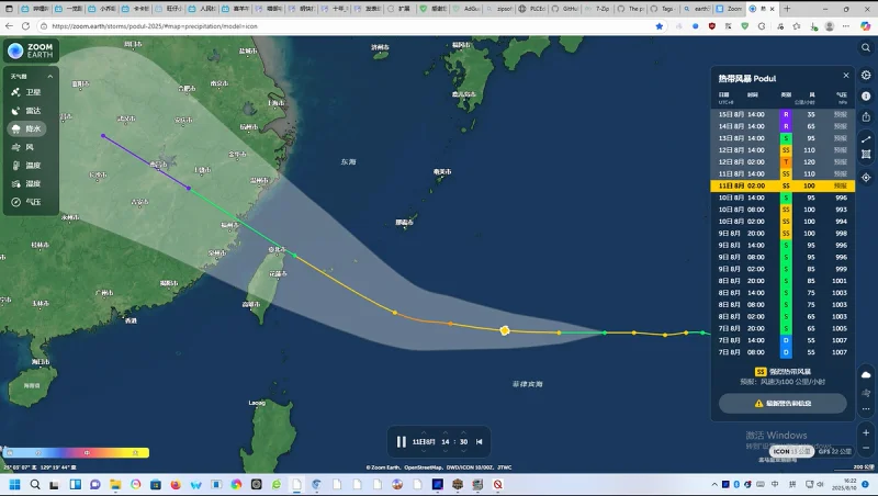 out (13)【Zoom Earth】2025年11号台风''杨柳’'最新情况