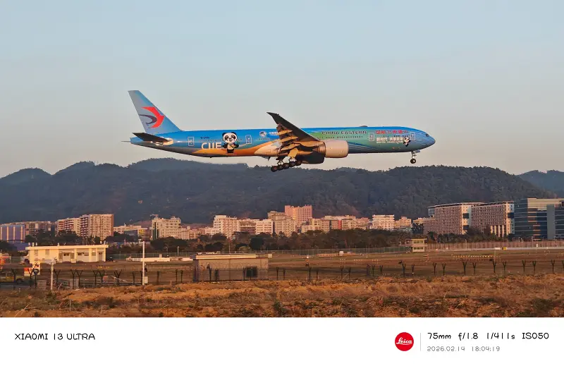 中華航空天合聯盟夕陽光降落深圳寶安國際機場
